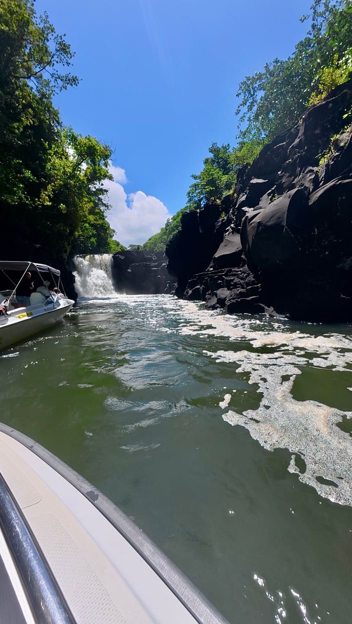 The price we agreed on: 2,500 Mauritian rupees total for two people. That included the speedboat to Ile aux Cerfs, the trip to Grand River South East Waterfall, and the return to the island afterward.